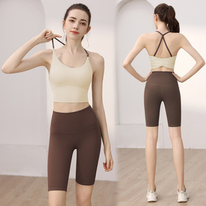 新款撞色运动内衣女细带瑜伽服背心高强度防震防下垂聚拢健身文胸