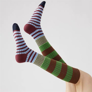 春夏爆款复古美拉德风撞色条纹户外时尚显瘦长筒棉袜及膝袜堆堆袜