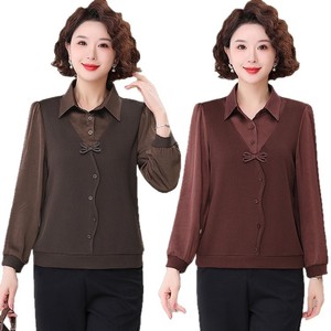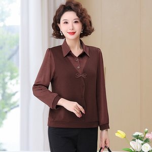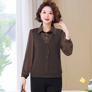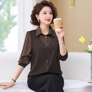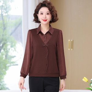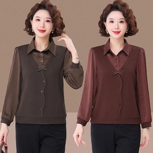 一件代发2025秋季新款妈妈装长袖衬衫打底中老年洋气上衣假两件女