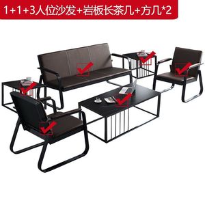 深棕色框架沙发_1+1+3沙发+岩板长茶几+方几