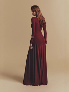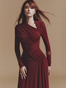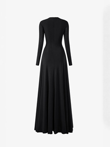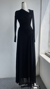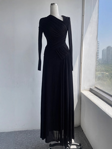 现货小众设计感抽褶不对称长袖超长连衣裙2025早秋拖地高档礼服裙