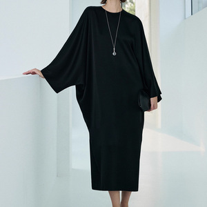 开KEI/日本进口重磅双面缎三醋酸堆量廓形蝙蝠袖后开衩连衣裙