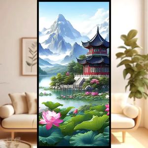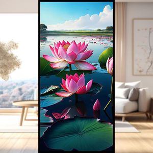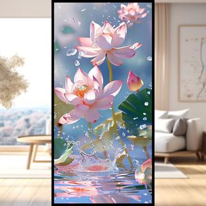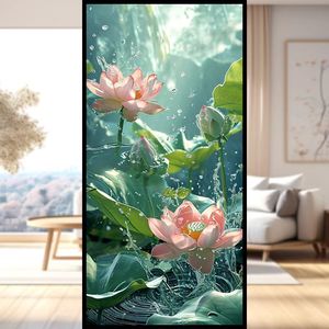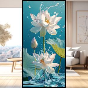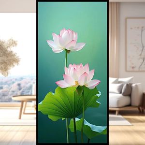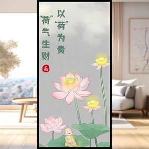 新款家居荷花pvc中式背景墙贴画客厅书房卧室装饰画防水哑光贴纸
