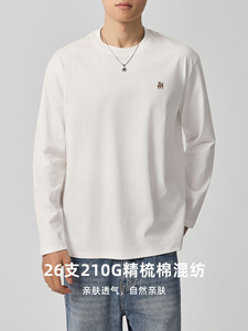 墨麦客男装立体压花打底衫男2025秋新款精梳棉混纺长袖t恤75152.