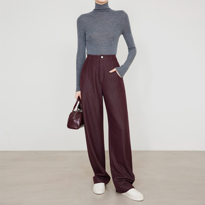 多季可穿垂感仿牛仔香蕉裤女新款藏青色裤子加长抗皱显瘦镰刀裤