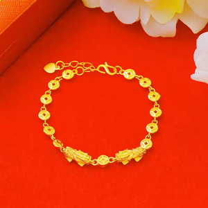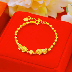 沙金饰品仿真金双貔貅铜钱手链时尚高级感久新中式不掉色手饰批发
