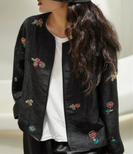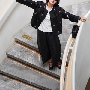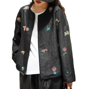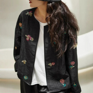 南油批发重磅龟纹真丝香云纱刺绣新中式上衣圆领长袖春夏开衫外套