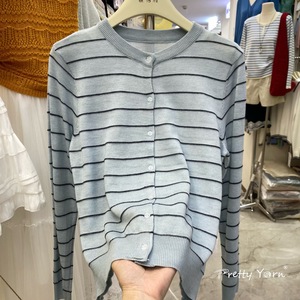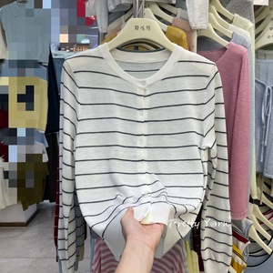 2025早秋新款撞色条纹简约针织开衫女六羊毛高级感时尚洋气上衣