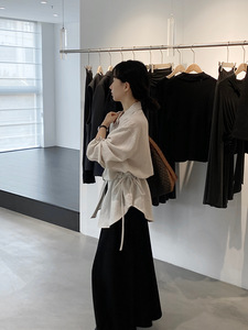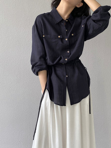 江左 天丝亚麻高级感衬衫女秋季抽绳系带长袖宽松衬衣上衣 1617