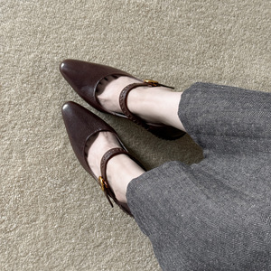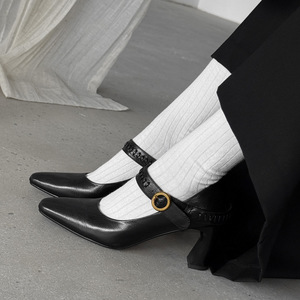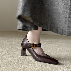 头层羊皮法式复古高跟玛丽珍鞋2025秋粗跟小方头真皮一字扣单鞋女