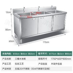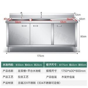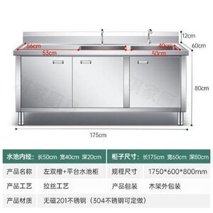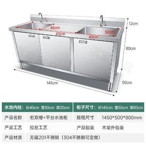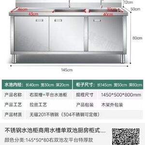 304不锈钢水池柜加厚水槽厨房柜式洗菜一体家用洗碗池橱柜商用