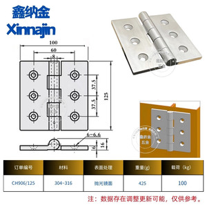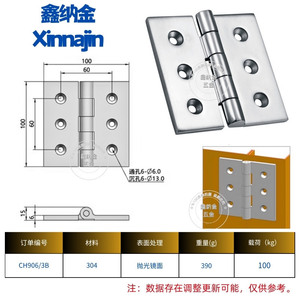 304不锈钢加厚合页大全工业机床设备柜门平开重型配电柜黑色铰链