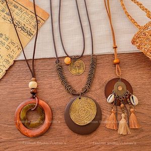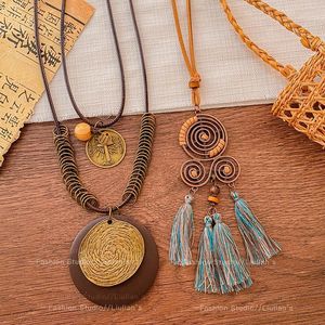 波西米亚长款流苏项链复古小众异域民族风木质毛衣链女新中式配饰