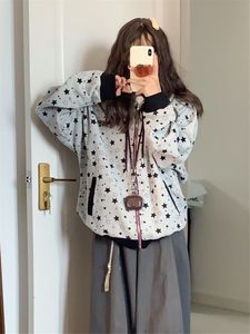 国潮牌满印星星刺绣字母拉链外套女春秋轻美式慵懒风连帽开衫卫衣