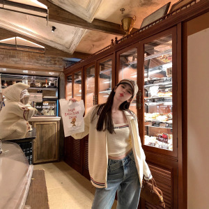 陈佳楠繆系老钱女高m1u25撞色边针织套装 翻领外套/吊带/半裙