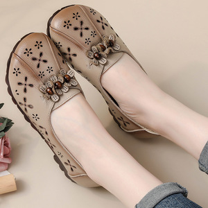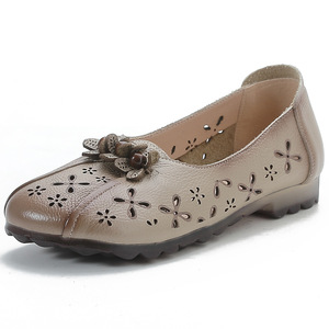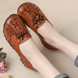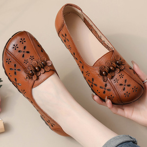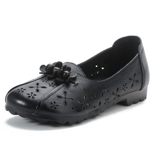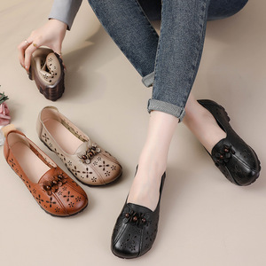 全牛皮手工女鞋复古民族风单鞋真皮牛筋软底中老年妈妈鞋圆头皮鞋