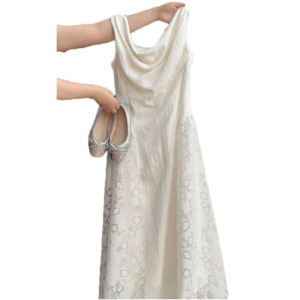 清纯白月光穿搭套装女夏季洋气减龄白色印花荡领一字肩吊带连衣裙