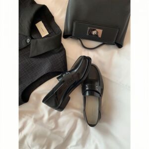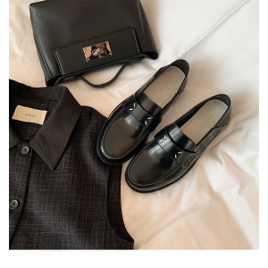 羊皮~葡萄妈真皮笑脸英伦小皮鞋女踩跟厚底增高懒人一脚蹬乐福鞋