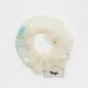 Tagi.亚克力珍珠装饰薄纱闪闪光泽珠珠发圈发绳小众配饰