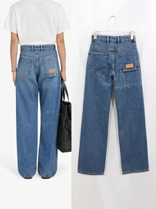 MM6牛仔裤女款深蓝直筒高腰阔腿宽松长裤女百搭显瘦2025早秋新款