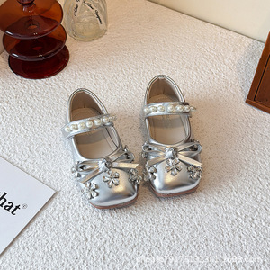 女童公主鞋2025年春秋新款软底蝴蝶结单鞋水晶鞋儿童宝宝皮鞋