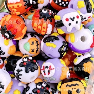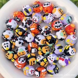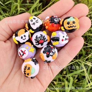 16mm卡通万圣节鬼节南瓜幽灵手绘珠diy手机链钥匙扣车挂串珠笔配