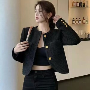 明星同款黑金高级感名媛小香风外套女装小个子短款粗花呢上衣秋季