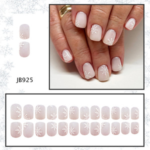 圣诞新款24片短款小方纯白雪花假指甲外贸热销假指甲批发