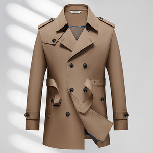莱诗伯特秋季男士商务风衣都市通勤双排扣风衣免烫质感短风衣外套