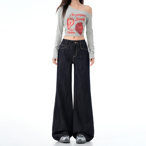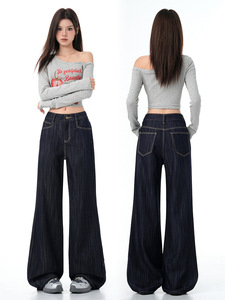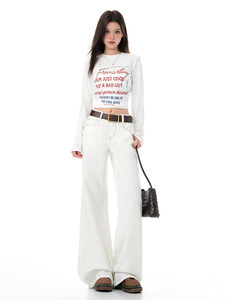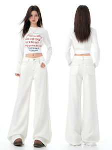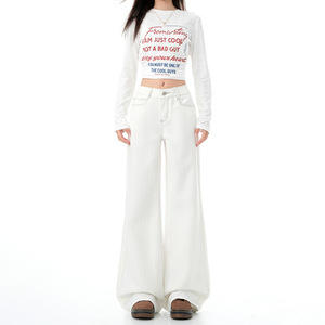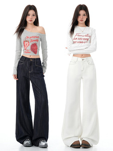 米白色不贴腿阔腿牛仔裤女秋季新款宽松直筒喇叭裤微弹阔腿