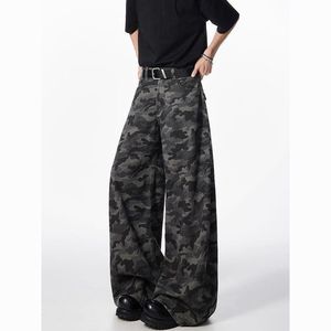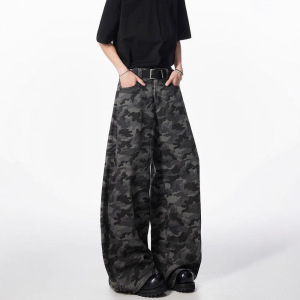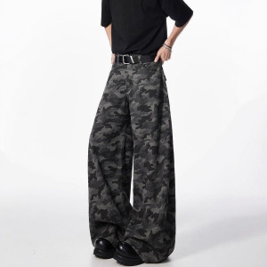 美式高街复古迷彩直筒牛仔裤男潮牌四季街头宽松百搭阔腿休闲长裤