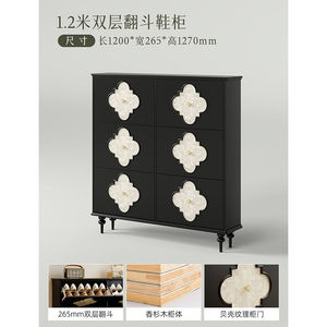 美式鞋柜1.2米双层 /(典雅黑)贝壳款