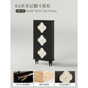 美式鞋柜0.6米单层 /(典雅黑)贝壳款