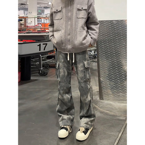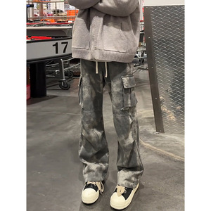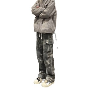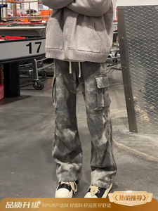 美式复古迷彩裤子男款夏季大口袋扎染直筒休闲裤设计感工装牛仔裤