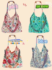 清新碎花托特包韩风女包抽绳手拎单肩斜挎包宽肩带直播爆款收纳包