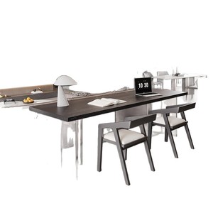黑色实木书桌横厅沙发后长条桌亚克力悬浮双人学习桌极简电脑桌子