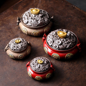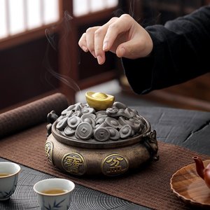 仿古纯铜莲蓬檀香炉禅意沉香盘香炉香插焚香炉茶道居室香薰炉摆件