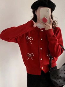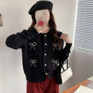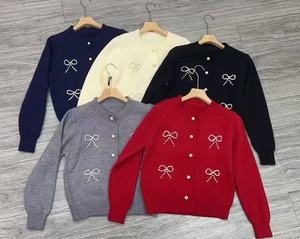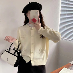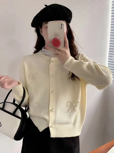 秋季时尚洋气宽松显瘦针织衫韩系温柔风甜美蝴蝶结钉珠毛衣外套女