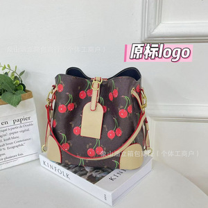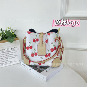 2025新款樱桃水桶女士手提包包百搭单肩斜挎包老花烧麦包外贸批发