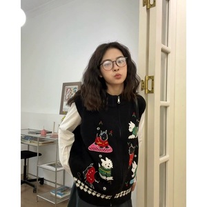 可爱卡通小狗刺绣针织马甲女装2025年早春季减龄宽松叠穿无袖上衣