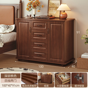 【品质欧松板-环保板材】100CM深胡桃色 【两门四抽】【欧松板版本门板及抽面因工艺问题为密度板】