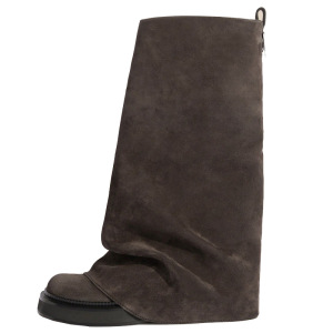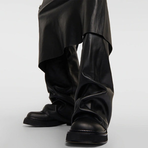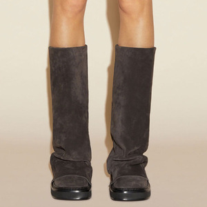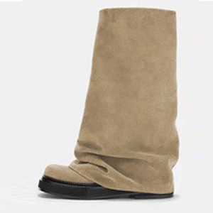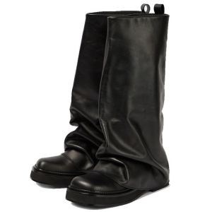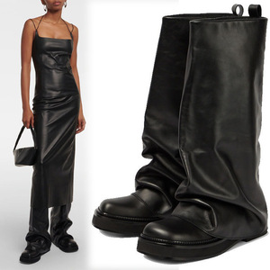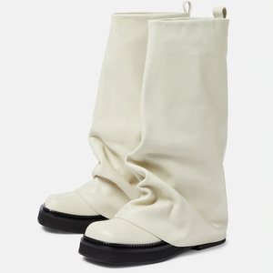 欧美新款圆头厚底大筒围褶皱裤管靴辣妹前卫大码不过膝套筒战士靴
