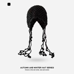秋冬保暖毛线帽手工编织镂空包头帽女民族风流苏护耳套头针织帽子