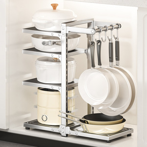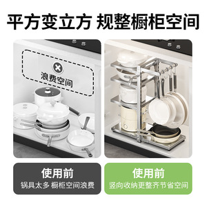不锈钢锅架下水槽分层厨房置物架挂钩架子橱柜台面多层锅具收纳架