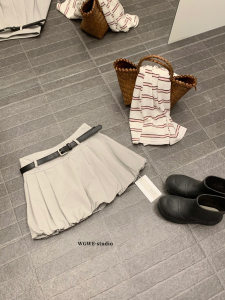 WGWE韩系百搭减龄短款花苞裙高腰蓬蓬a字短裙半身裙W6593(配腰带)