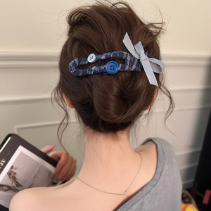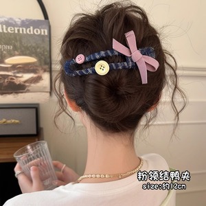 纽扣蝴蝶结鸭嘴发夹女高级感大号一字夹后脑勺发卡高级感头饰发饰