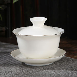 羊脂玉白瓷盖碗三才碗敬茶碗单个家用泡茶泡单盖功夫茶具