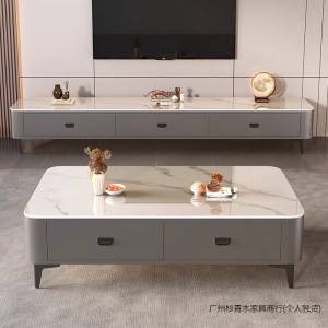 现代简约轻奢茶桌北欧落地茶几组合岩板电视柜客厅家用小户型批发