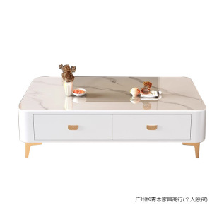 100雪山白岩板+白柜金飞机腿茶几