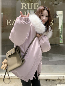 羽绒棉服女冬季韩版a字型面包服加厚棉衣百搭大毛领派克工装外套